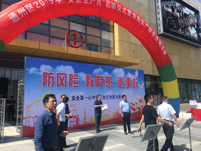 通州區(qū)進(jìn)行安全生產(chǎn)月動(dòng)員活動(dòng),活動(dòng)分為啟動(dòng)儀式、教育培訓(xùn)、演練、咨詢,活動(dòng)得到政府大力支持。